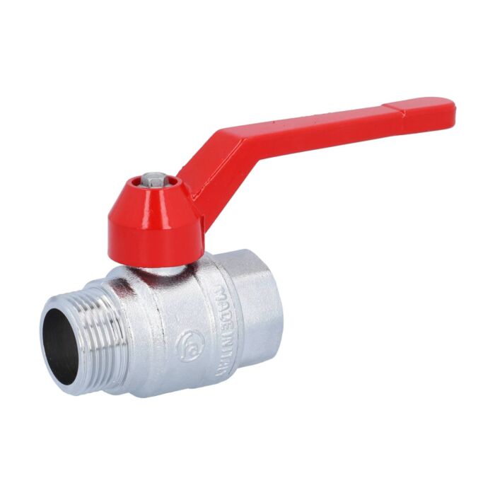 | Bezeichnung | Kugelhahn 1", PN40, Ms/PTFE-FKM Innen-/Außengew., voller Durchgang, Handhebel rot |