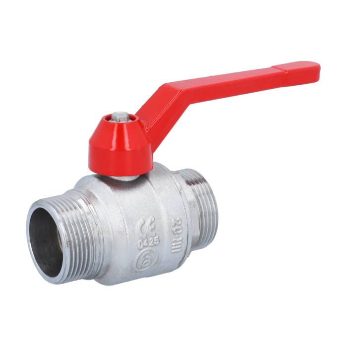 Kugelhahn 11/4", PN40, Ms/PTFE-FKM Außengewinde, voller Durchgang, Handhebel=rot