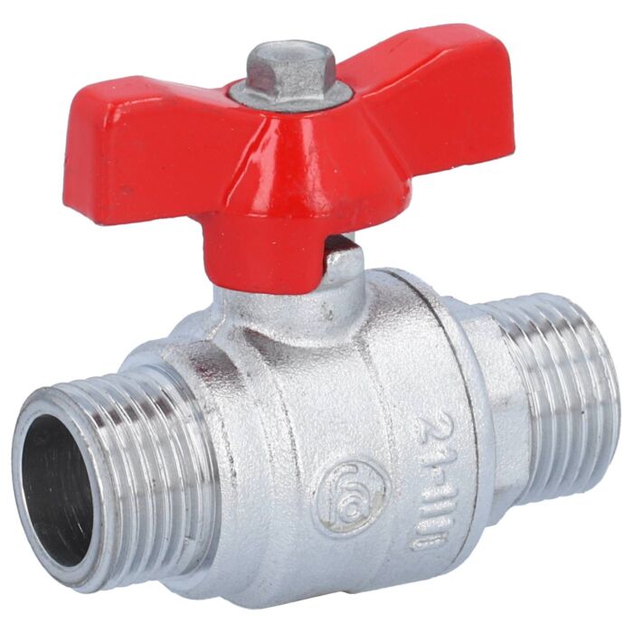 Kugelhahn 1/2", PN40, Ms/PTFE-FKM Außengewinde, voller Durchgang, Flügelgriff rot