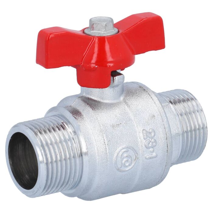 Kugelhahn, PN40, Messing/PTFE-FKM Außengewinde, Flügelgriff rot / Artikelnummer: TB1156