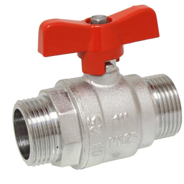 Kugelhahn 1", PN40, Ms/PTFE-FKM Außengewinde, voller Durchgang, Flügelgriff rot