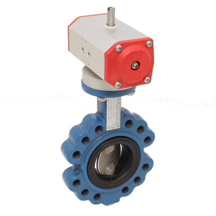 Absperrklappe LUG, DN40, mit Antrieb-ED, DW55 GGG/Edelstahl/NBR, doppeltwirkend