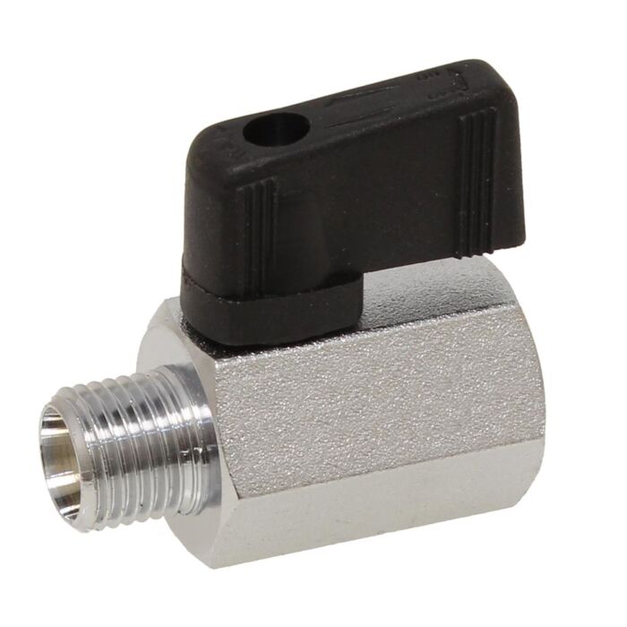 Mini-Kugelhahn 3/8", Ms/PTFE-FKM PN30, -20 bis +90°C, Innen-/Außengewinde