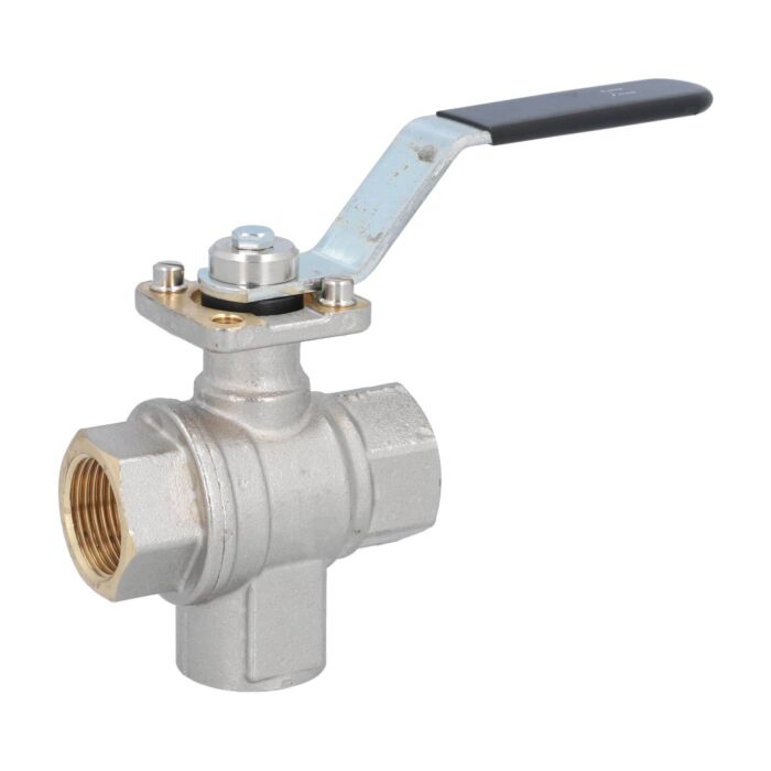 | Bezeichnung | 3-Wege Kugelhahn 3/4", PN16, Ms/PTFE-FKM L-Bohrung, zweiseitig dichtend |