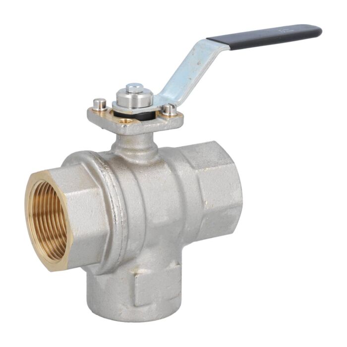 | Bezeichnung | 3-Wege Kugelhahn 11/4", PN10, Ms/PTFE-FKM L-Bohrung, zweiseitig dichtend |