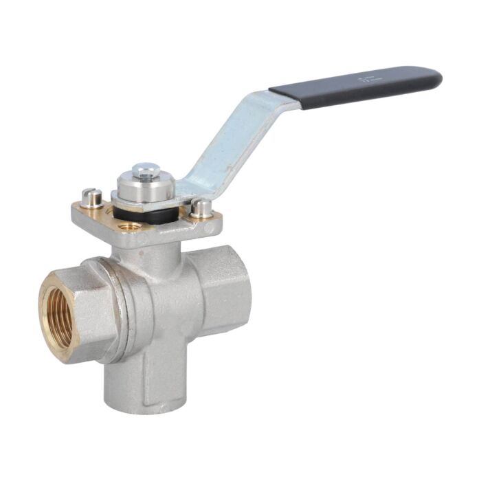 3-Wege-Kugelhahn 1/2", PN25, Ms/PTFE-FKM T-Bohrung, zweiseitig dichtend