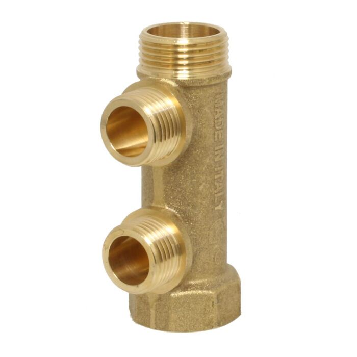 Verteiler Messing 3/4" - 2 Abgänge 1/2" Außen PN10, Achsabstand 38mm, max. Temp.: +100°C