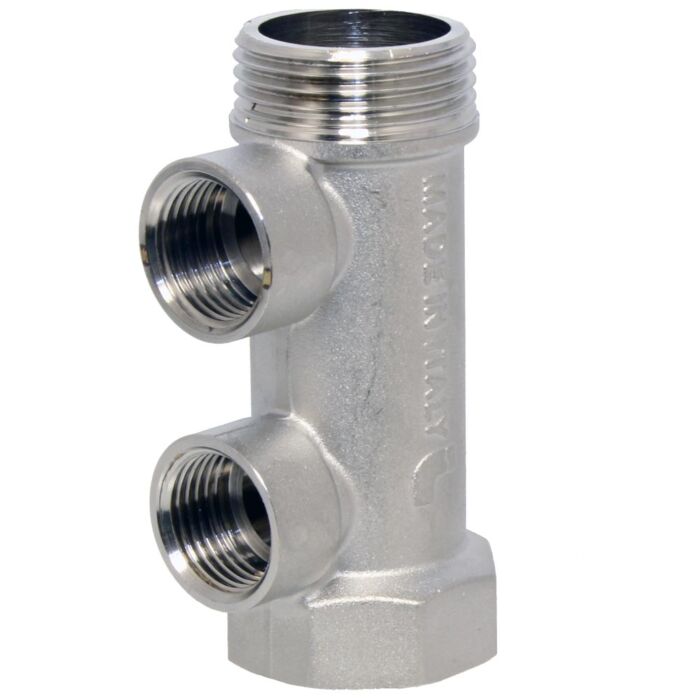 Verteiler Messing 1" - 2 Abgänge 1/2" Außen PN10, Achsabstand 38mm, max. Temp.: +100°C