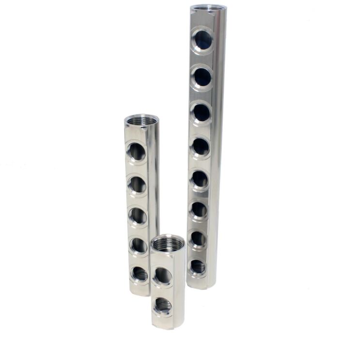 Bezeichnung Verteiler Ms.-vernickelt, 3/4"-6 Abgänge 1/2"Innen PN10, Achsabstand 38mm, max. Temp.: +100°C