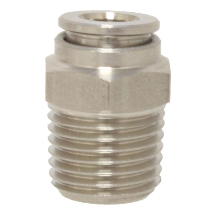 Bezeichnung Gerade-Steckverschraubung, Edelstahl, D10-3/8" Aussengewinde-konisch, max: 18bar, -20°C / 150°C
