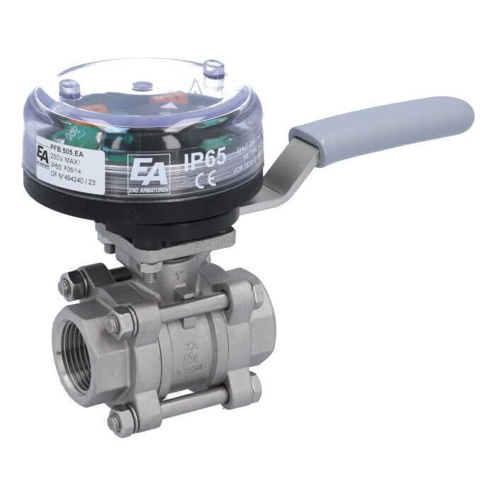Kugelhahn-ZA, 1", mit VE-Endschalter el./mech. Innengewinde, Edel./PTFE-FKM, max. 250VAC-5A, IP65