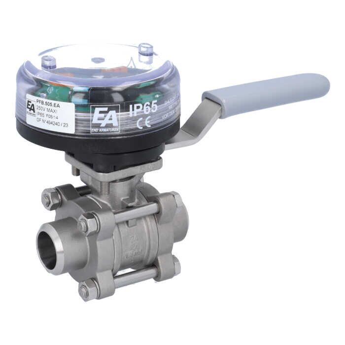 Kugelhahn-ZA, DN25, mit VE-Endschalter el./mech. Anschweißenden, Ed./PTFE-FKM, max. 250VAC-5A, IP65