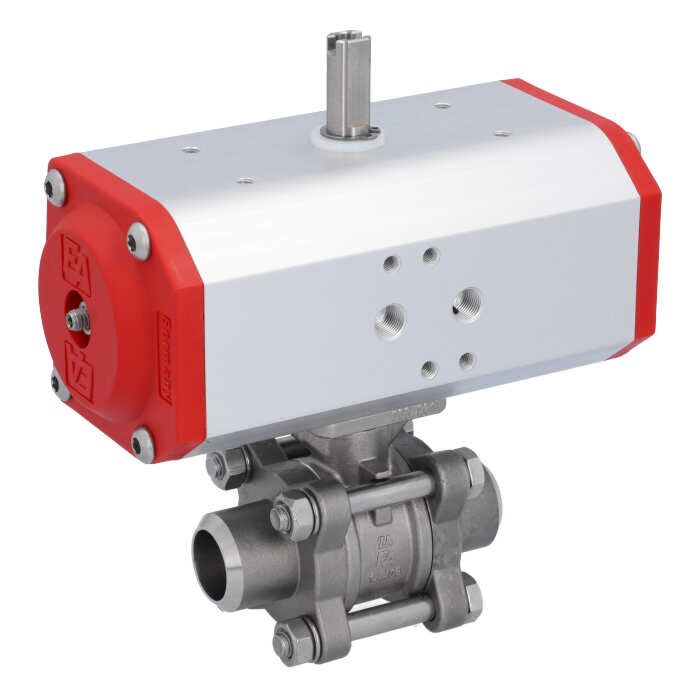 Kugelhahn-ZA, DN20-Anschweißende, mit Antrieb-ED55 Ed/PTFE-FKM, hohlraumarm, doppeltwirkend
