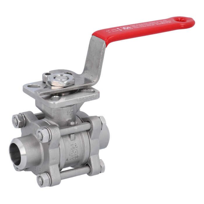 Bezeichnung Kugelhahn DN15, PN64, 1.4408/PTFE-FKM Anschweißenden, hohlraumarm, ISO 5211, DIN3202-S13