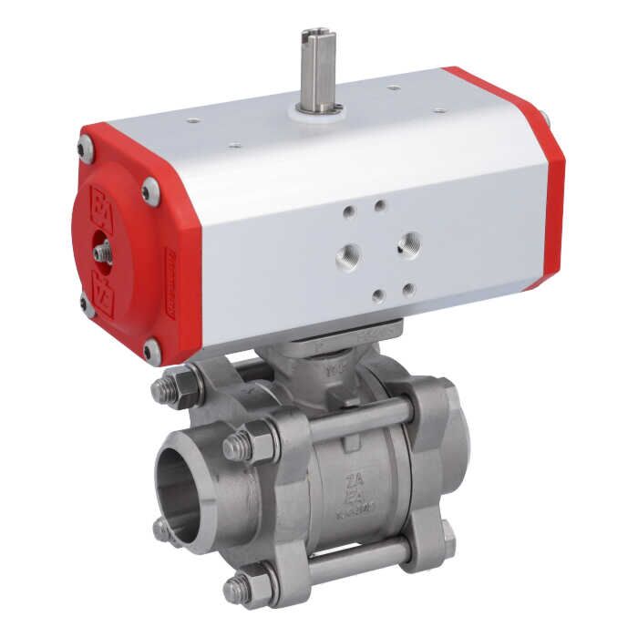 Kugelhahn ZA DN32-Anschweißende, mit Antrieb ED55 Edelstahl/PTFE-FKM, doppeltwirkend