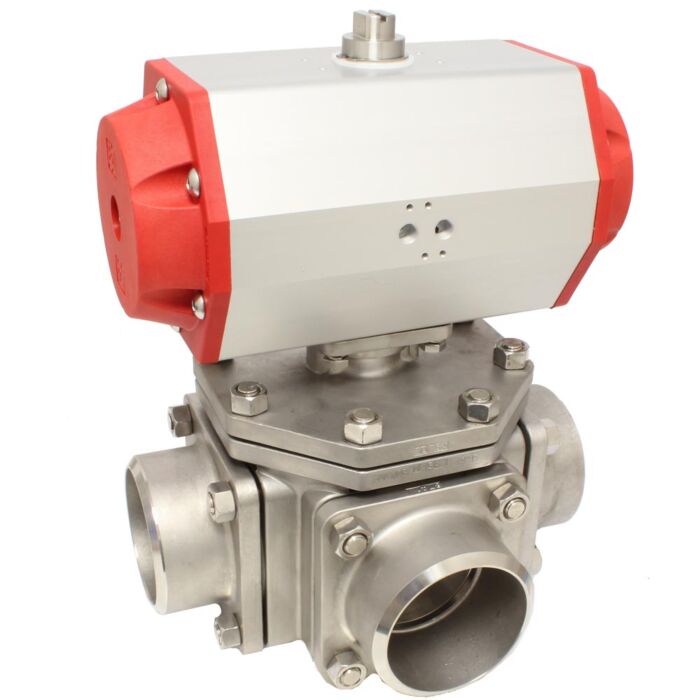 3-Wege Kugelhahn DN40, PN40, T-Bohrung Edel.1.4408/PTFE/FKM, ISO5211,Anschweiß.