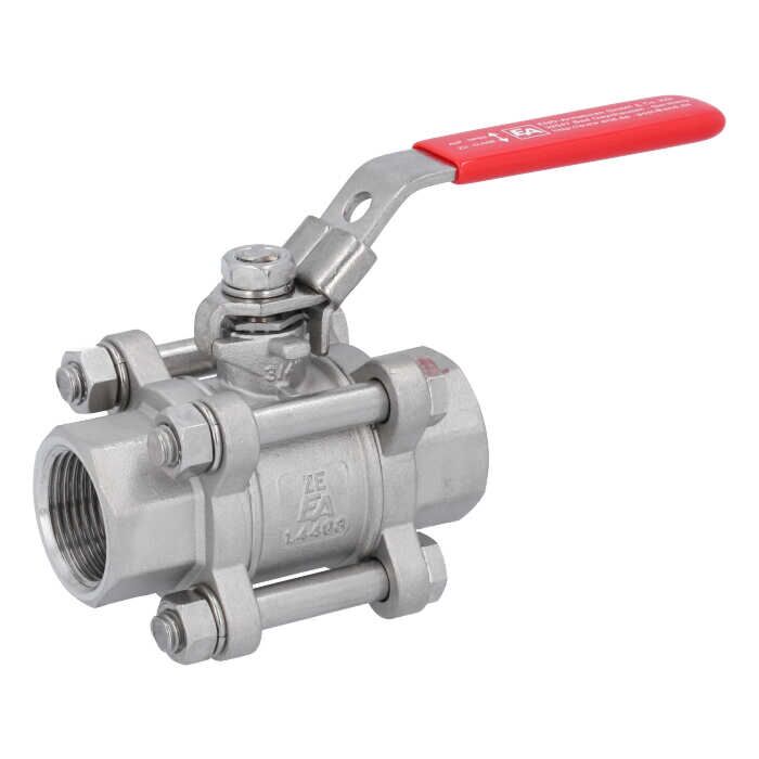 Kugelhahn, PN40 bis PN64, Edelstahl/PTFE 3-teilig, Innengewinde / Artikelnummer: ZE31102