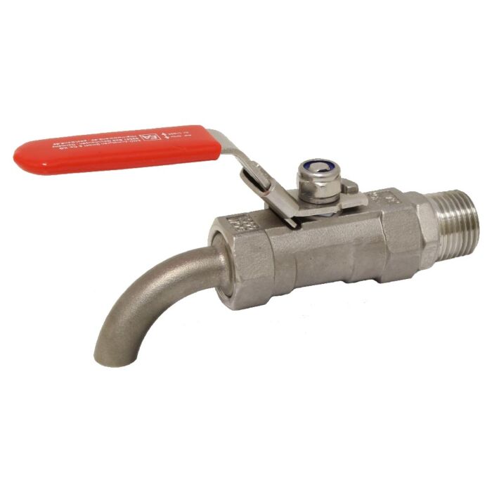 Bezeichnung Kugelhahn ZG, 1/2"-3/8", PN16, mit Ablassrohr Edelstahl/PTFE, reduzierter Durchgang