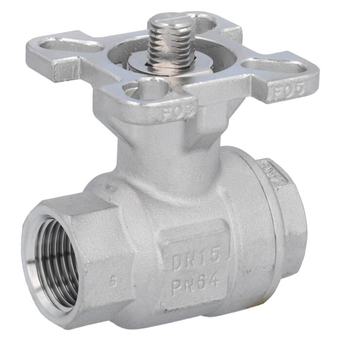 Kugelhahn 1/2", PN64, 1.4408/PTFE-FKM, DIN3202-M3 Innengewinde, ISO5211, F03/F04, Vkt. 9mm