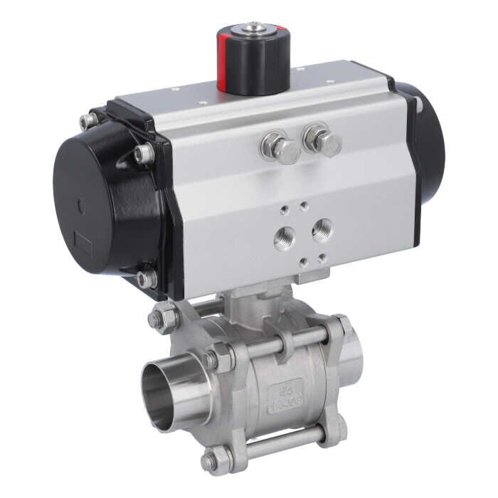Ball valve-MA, DN40-welded ends, actuator-OE75, Stainless steel/PTFE-FKM, spring return