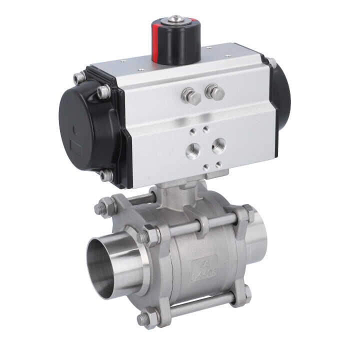 Ball valve-MA, DN50-welded ends, actuator-OD65, Stainless steel/PTFE-FKM, double acting