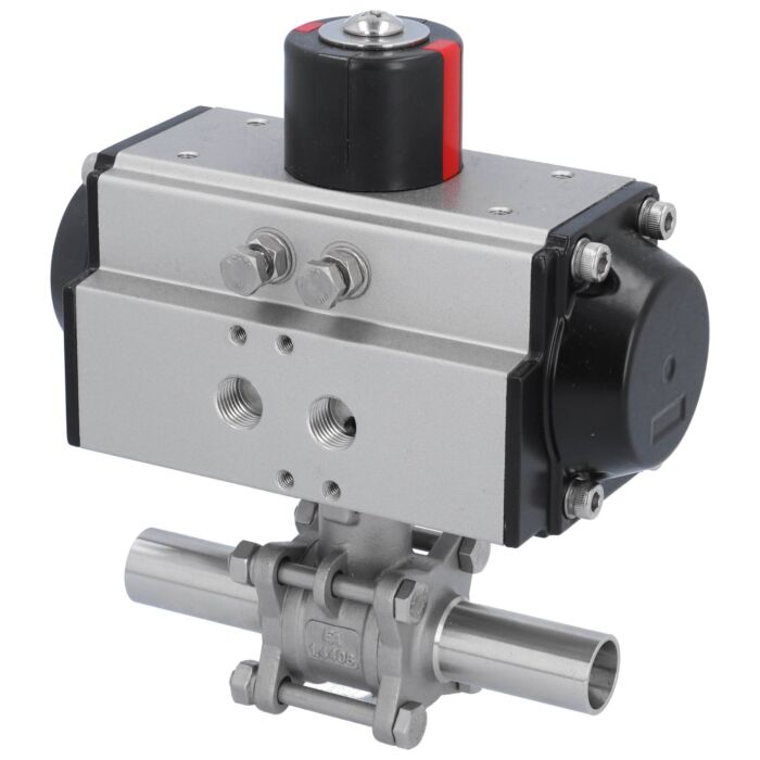 Kugelhahn MA DN15-Anschweißende, mit Antrieb OD50 Edelstahl/PTFE-FKM, hohlraumarm, doppeltwirkend
