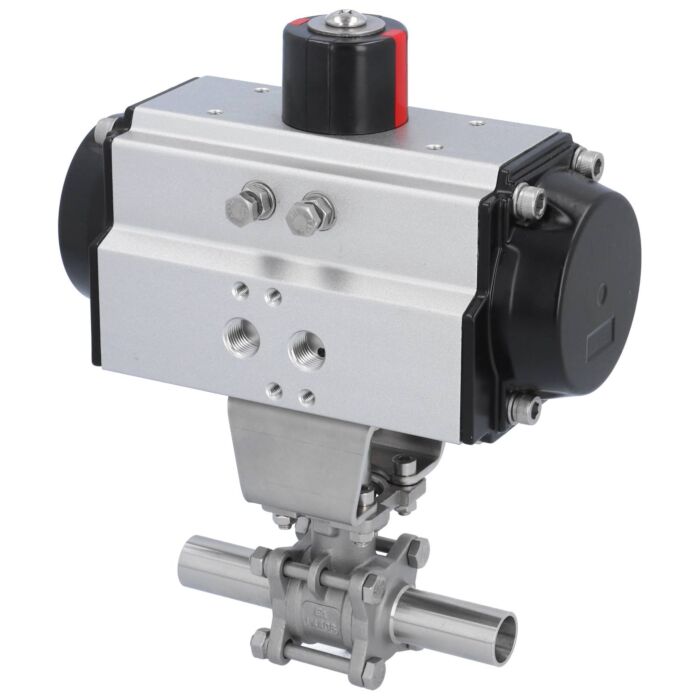 Kugelhahn MA DN15-Anschweißende, mit Antrieb OE65 Edelstahl/PTFE-FKM, hohlraumarm, federrückstellend