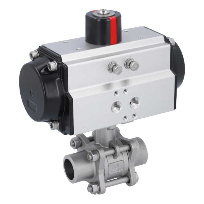 Ball valve-MA DN25-welded ends, actuator-OD65, stainl. steel/PTFE-FKM, cavity free, double acting