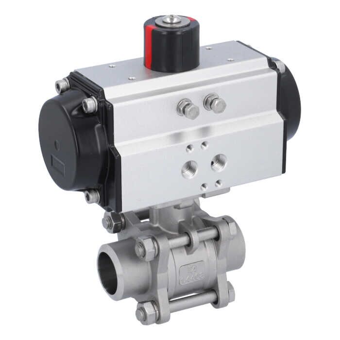 Ball valve-MA DN32-welded ends, actuator-OD65, stainl. steel/PTFE-FKM, cavity free, double acting