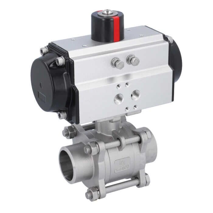 Ball valve-MA DN40-welded ends, actuator-OD65, stainl. steel/PTFE-FKM, cavity free, double acting