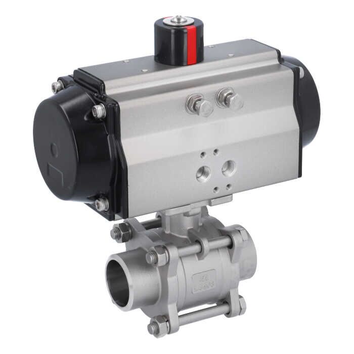 Ball valve-MA DN40-welded ends, actuator-OE95, stainl. steel/PTFE-FKM, cavity free, spring return