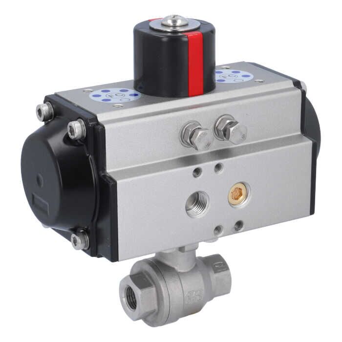 Description Kugelhahn MU 1/4", mit Antrieb OE, EW50 Edelstahl/PTFE-FKM, federrückstellend