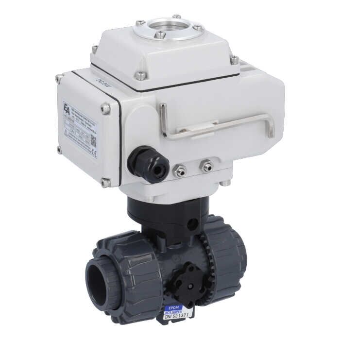 Ball valve-SH, DN50/d63, actuator-LE05, PVC-U/PTFE-EPDM, 24V DC, operating time app.20s