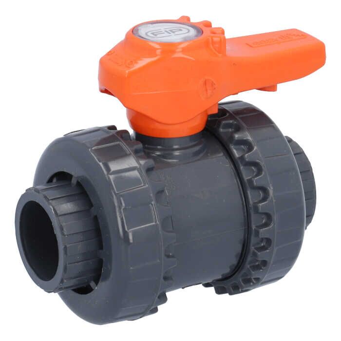 2-way ball valve SL, DN25, bonded socket d32, PN16 PVC-U/PTFE-EPDM, handle: orange