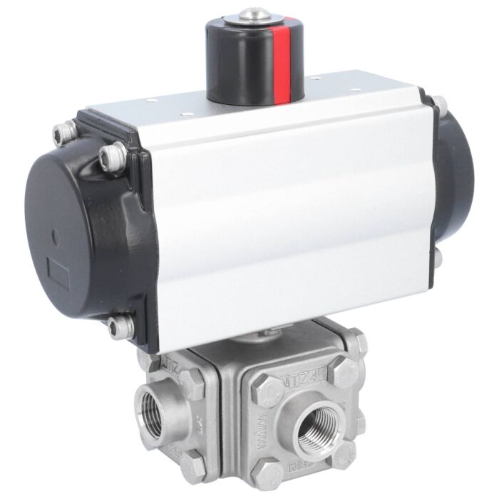 Ball valve ZD, 1/2", with actuator-OE, SR65 st. steel 1.4408/PTFE-FKM, L-bore, spring return