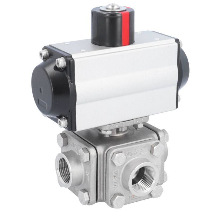 Ball valve ZD, 3/4", with actuator-OD, DA50 st. steel 1.4408/PTFE-FKM, L-bore, double acting