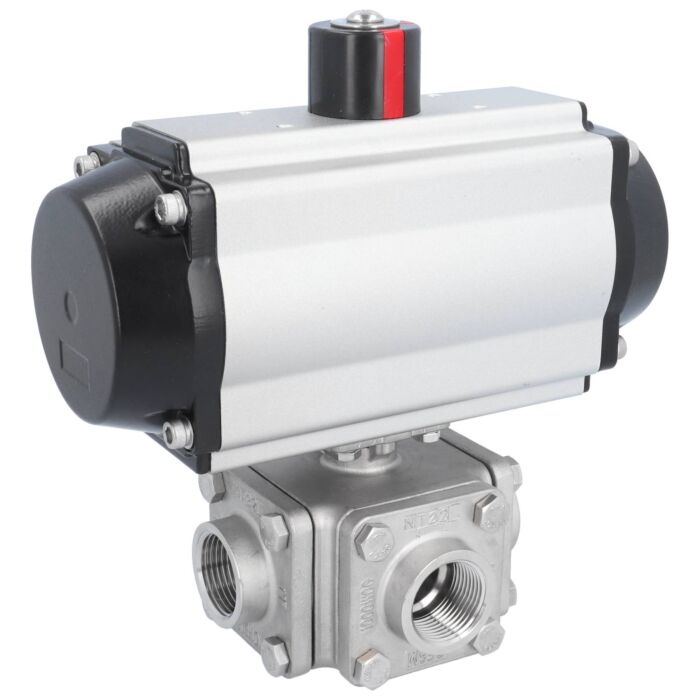 3-way ball valve 1 ", PN40, L-bore Stainless steel 1.4408 / PTFE / FKM, ISO5211