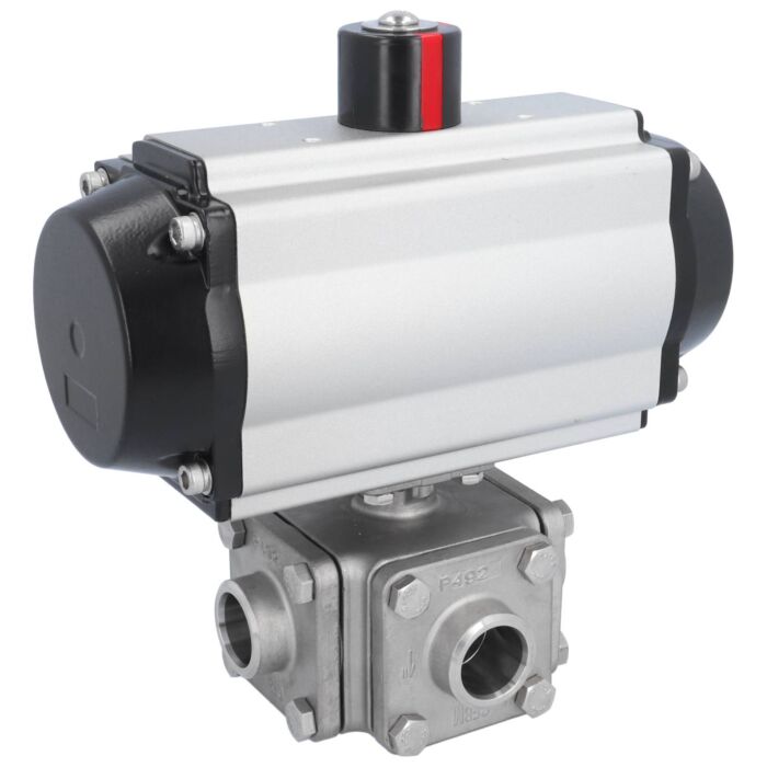 3-way ball valve DN25, PN40, L-bore, Stainless steel 1.4408 / PTFE / FKM, ISO5211, weld