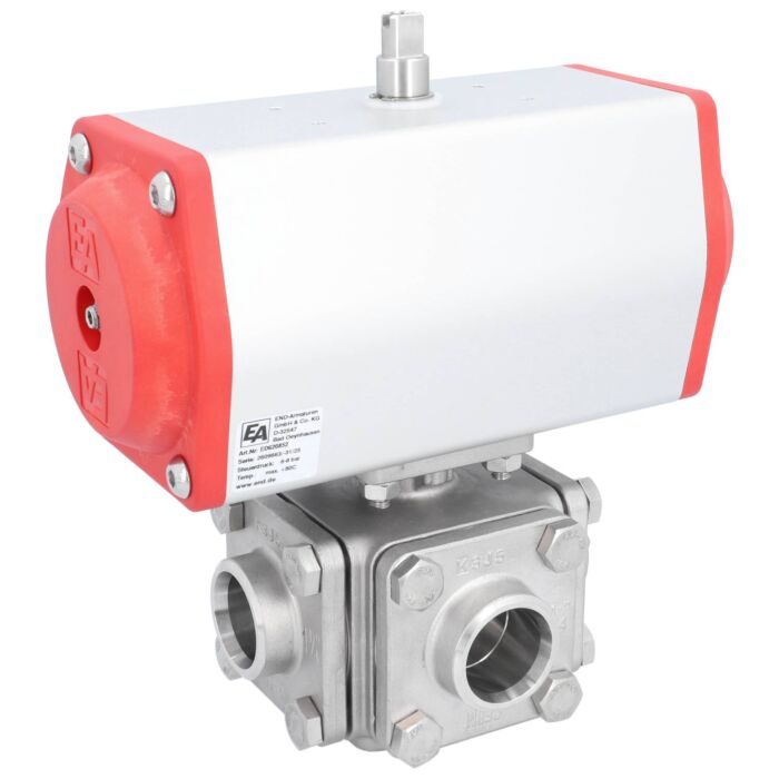 Ball valve ZD, DN32, with drive-EE, EW85, stainless steel 1.4408 / PTFE FKM, L-bore, spring
