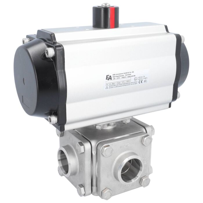 3-way ball valve DN50, PN40, L-bore, Stainless steel 1.4408 / PTFE / FKM, ISO5211, weld