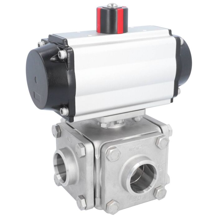 Ball valve-ZD, DN50, with actuator-OD, DA85, st. steel 1.4408/PTFE-FKM, T-bore, double acting