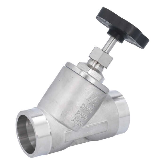 Description Schrägsitzventil DN40, PN40, DIN3239, RK Edelstahl 1.4408/PTFE