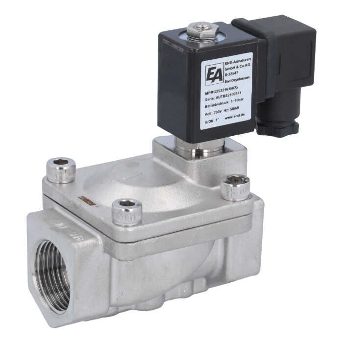 Description 2/2-Magnetventil, G1", Edelstahl/FKM, 230VAC 1-10bar, servogesteuert