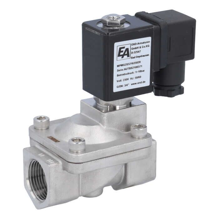 Description 2/2-Magnetventil, G3/4", Edelstahl/EPDM, 230VAC 1-10bar, servogesteuert