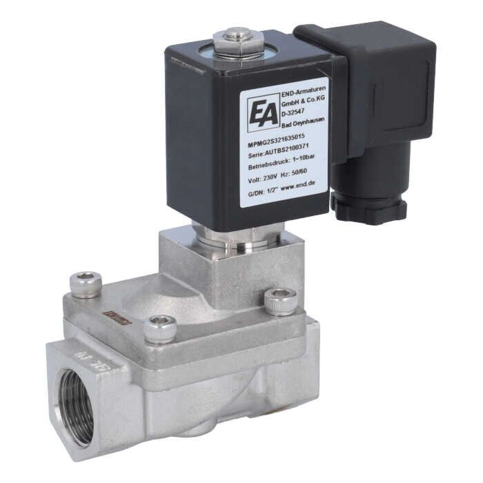 Description 2/2-Magnetventil, G1/2", Edelstahl/EPDM, 24VDC 1-10bar, servogesteuert